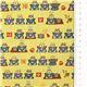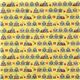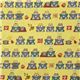Shiba Inu Dogs Yellow Canvas. Japanese light yellow canvas with rows of shiba inu light brown and taupe dogs dressed in blue and teal kimonos, with red seals and darumas very high quality fabric, typical perfect Japanese quality