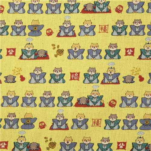 7,8 Yellow canvas funny Japanese shiba inu dogs in blue kimono Fabric by Japanese Indie - modes4u