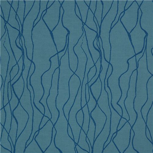 by Robert KaufmanBlue Lines Cotton Linen Fabric by Robert Kaufman. textured cotton linen with blue background and contrasting blue wavy lines; teal very high quality fabric, typical great Robert Kaufman quality