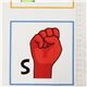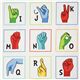 by Robert KaufmanHand Sign Language White Robert Kaufman Fabric. white cotton fabric with colorful squares, sign language alphabet with letters and hand gestures