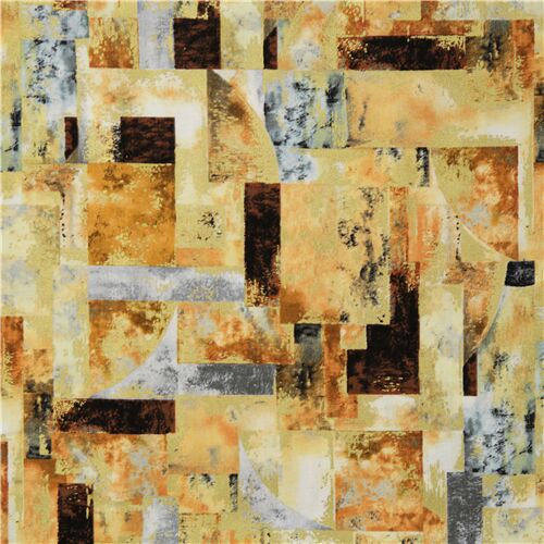yellow brown metallic gold blocks fabric by Timeless Treasures Fabric