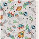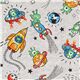 Grey Green Aliens Cotton Fabric by Michael Miller. grey cotton fabric with green aliens and blue, yellow rockets, includes planets and stars
