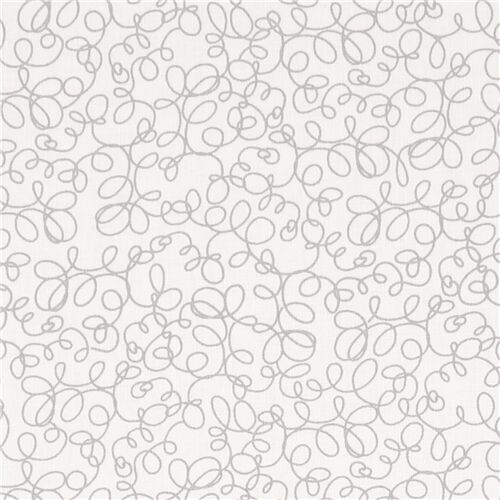 Michael Miller white cotton fabric grey curly lines Fabric