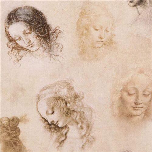 26 Leonardo Da Vinci drawing heads study fabric Robert Kaufman Fabric by Robert Kaufman - modes4u