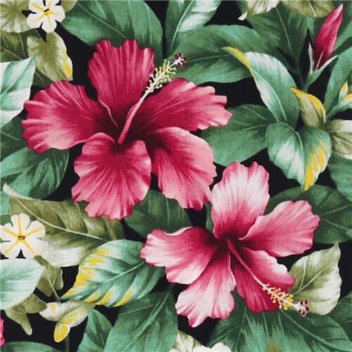 6,23 Black tropical pink hibiscus flower leaf Trans-Pacific Textiles fabric Fabric by Japanese Indie - modes4u