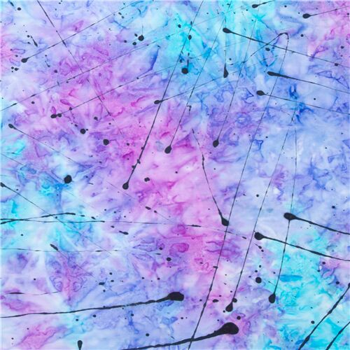 7,18 Timeless Treasures blue purple pink batik fabric black spots Fabric by Timeless Treasures - modes4u