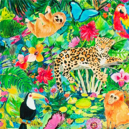 6 Green jungle animal by Dear Stella frog toucan monkey fabric Fabric by Timeless Treasures - modes4u