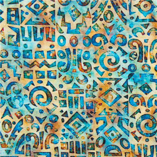 7 Geometric shapes batik yellow blue fabric Quilting Treasures Fabric by Japanese Indie - modes4u