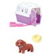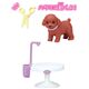 highly detailed miniature dog grooming and carrier toys encapsulated, with brown or cream small dogs, grooming station, bed bath, pet carrier etc.
