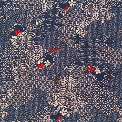 navy blue bunny rabbit cotton fabric structured from Japan Fabric
