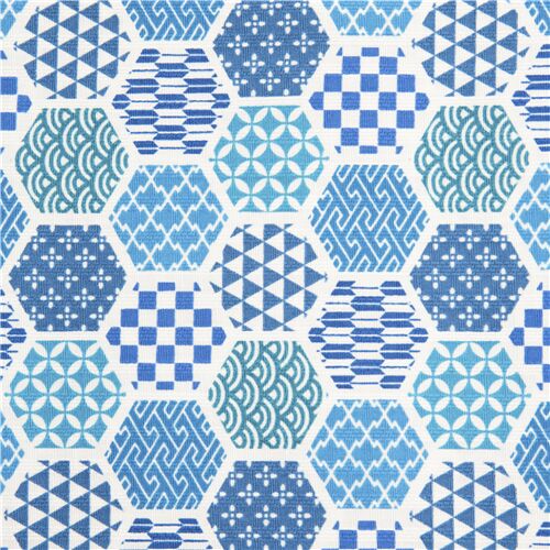 7 Dobby tones of blue hexagon fabric with traditional patterns Japan Fabric by Japanese Indie - modes4u
