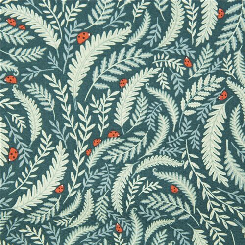 6 green fern leaves cotton fabric by Dear Stella with ladybugs Fabric by Timeless Treasures - modes4u
