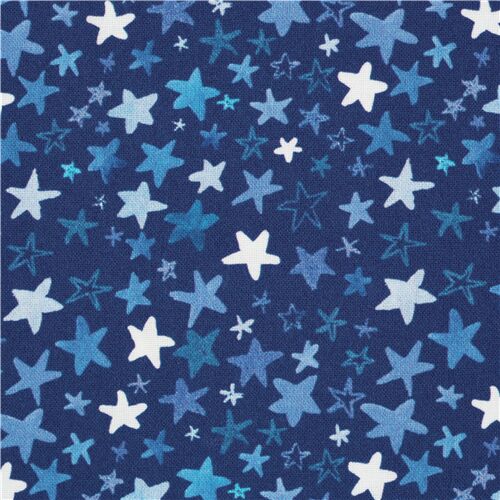 Digital Printed Stars Fabric by Dear Stella. dark blue background with sketchy stars in white and light blue very high quality fabric, typical Dear Stella great quality100% cotton, USA Fabric