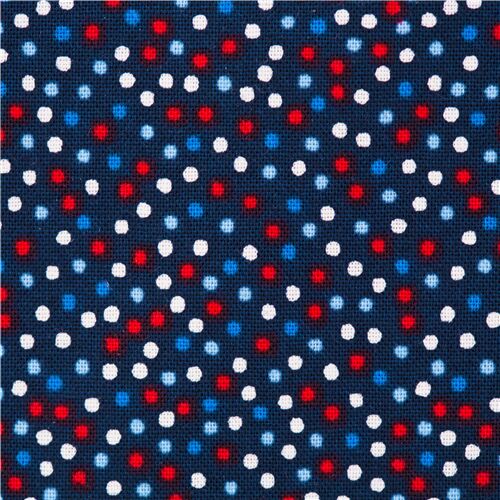 by Michael MillerRed White Blue Polka Dots Navy USA Fabric. navy cotton fabric with cute and cheerful polka dots in red, white and blue- great as a blender fabric fabric from the US, 100% cotton, good quality as usual from Michael Miller