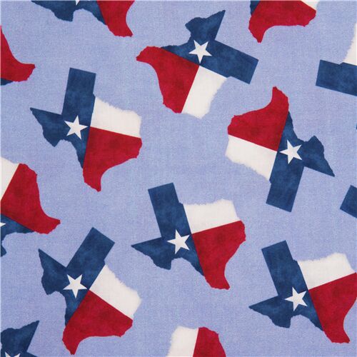 Texas Flag & Map Fabric by Michael Miller USA. cotton fabric featuring tossed silhouettes of Texas state with its red, white and blue lone star flag "Lone Star State"