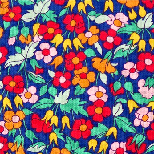 7,17 Liberty Fabrics bright poppy flowers navy blue cotton fabric Fabric by Liberty Fabrics - modes4u