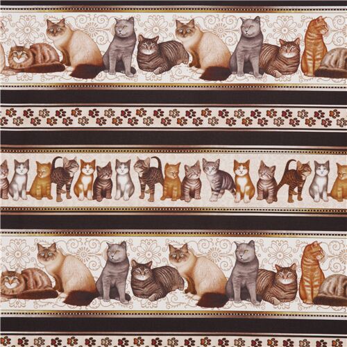 23,24 Cats and kittens in rows with black stripes USA cotton fabric Quilting Treasures Fabric by Japanese Indie - modes4u