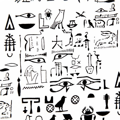 23,542,22 Egyptian Hieroglyphics Monochrome Pictorial Symbols Fabric by Alexander Henry - modes4u