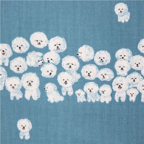 7 Kokka dogs lightweight gauze fabric bichon frise blue Fabric by Kokka - modes4u