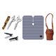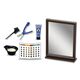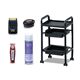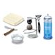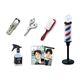 highly detailed miniature set with 8 setups for the salon: barber's pole, cart, scissors, mirror, shampoo bowl, shaving kit, barber chair, pomade