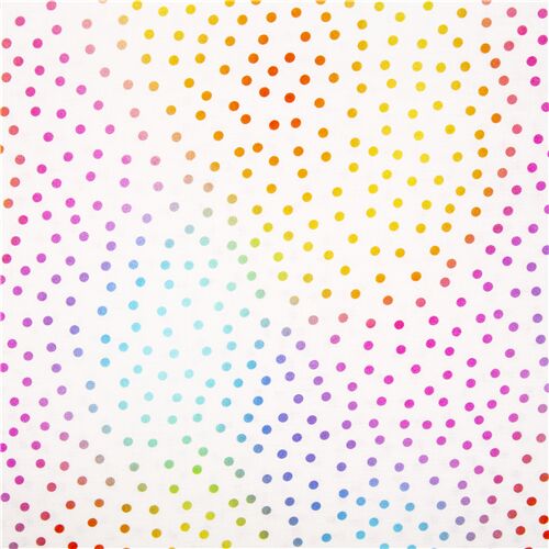 White Dotted USA Cotton Fabric. quilting cotton, rainbow dots irregularly scattered on white background, great as blender fabric fabric from the US, 100% cotton, good quality as usual from Michael Miller