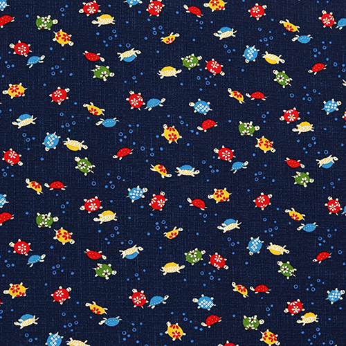 by Japanese Indie Featuring swimming turtles with their bodies made up of colourful traditonal Japanese patterns, with tiny bubbles, on a cross hatched indigo background. This fabric is smooth 100% cotton sheeting. Perfect for all types of projects. Another beautiful high quality cotton from Japanese Indie brand, Sevenberry.
