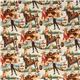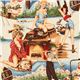 tela de algodón con chicas pin-up esquiando, pescando y en la cabaña