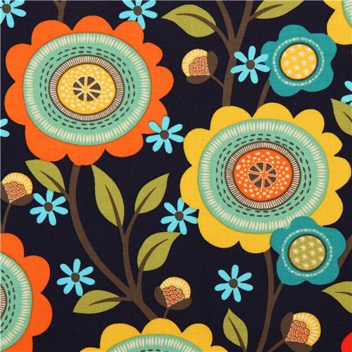 tela de algodón azul marino con flores de muchos colores