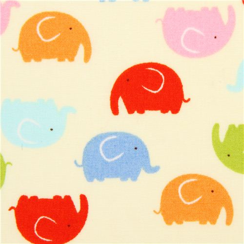 Tela kawaii de animales de Belleboo con graciosos elefantes de colores, producto de EEUU