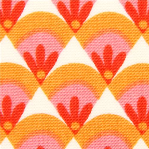 tela en blanco roto de algodón con pequeños rombos en naranja y rosa