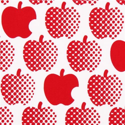 Tela fina ligera blanca manzana roja satén algodón de Kokka Tela