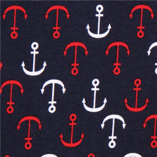 bonita tela de punto jersey azul oscuro con anclas blancas y rojas