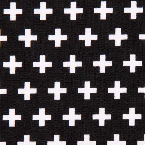 Tela de cruces. tela negra de algodón con signos de suma en blanco tejido de máxima calidad, con la categoría típica de Robert Kaufman