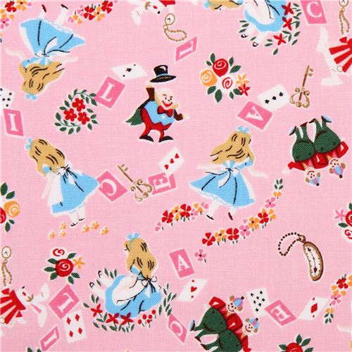 pink Kokka Alice in Wonderland fairy tale fabric from Japan 1