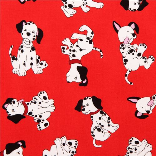 tela roja de algodón con simpáticos perritos dálmata