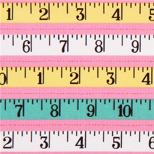 tela de rayas de algodón rosa con cinta métrica en blanco, verde y amarillo
