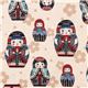 tela de lona ligera de color crema con muñecas rusas grandes y pequeñas y flores