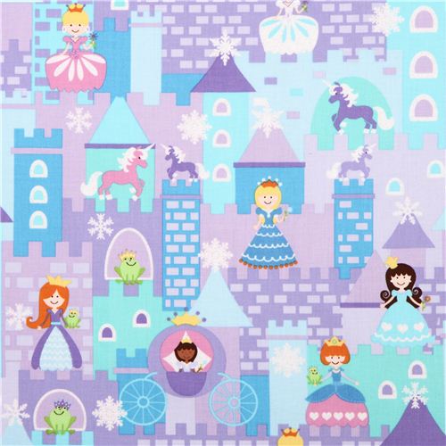 purple ice princess castle fabric with silver glitter Timeless Treasures 1