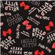 tela negra tipo oxford con lazos y texto de Hello Kitty