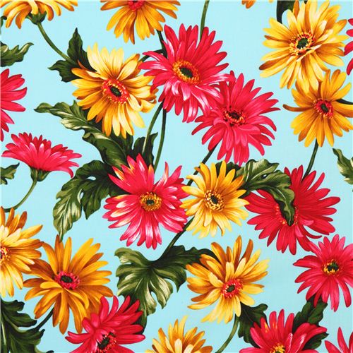 Tela azul rosa amarillo floral flor gerbera de Michael Miller Tela