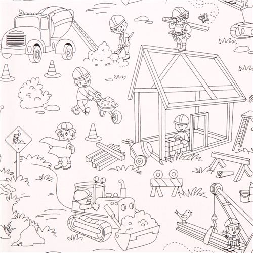 22 Tela colorear obra construcción obrero casa de Michael Miller Fabric by Michael Miller - modesS4u