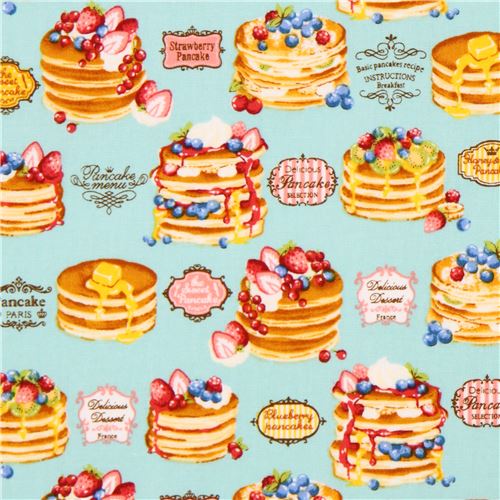 7 Tela azul panqueque fruta texto de Cosmo Japón Fabric by Cosmo - modesS4u