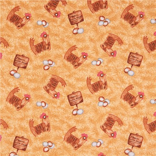 Tela de animales tela marrón claro con lindas gallinas y huevos tejido de muy alta calidad, con la categoría típica de los textiles estadounidenses