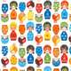 tela de algodón blanca con mujeres de trajes de colores en naranja, amarillo, verde, etc.
