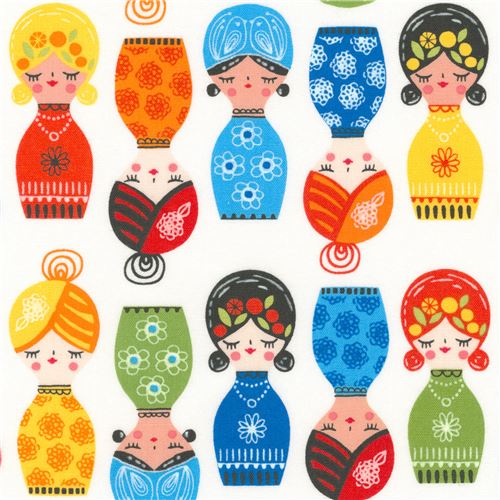 Tela blanca con mujeres traje de colores de Robert Kaufman Little Senoritas Tela
