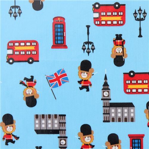 Laminado con motivos de Londres tela de popelina de algodón azul laminada con autobuses rojos, ositos de la Guardia Real, etc. tejido de máxima calidad, con la categoría típica de los textiles japoneses