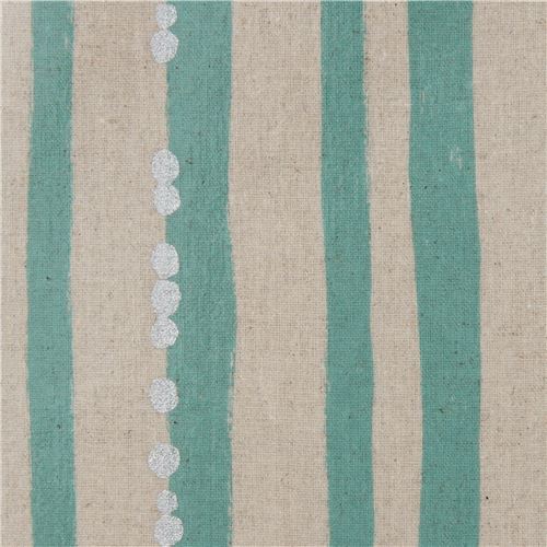 de Echino FabricsLaminado de echino tela de lona a rayas en color natural y verde mar, con lunares, con adornos metalizados plateados tejido de máxima calidad, con la perfección típica de los textiles japoneses