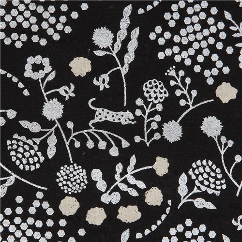 23 Tela negra con flores lona laminada de echino con adornos plateados Fabric by Echino Fabrics - modesS4u