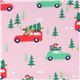 Tela rosa de Navidad de Michael Miller con árboles y coches Tela