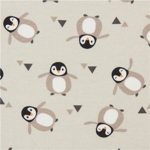 Tela de punto gris pardo claro con pingüinos Tela